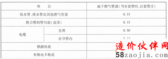 地下燃气管道与构筑物或相邻管道之间垂直净距(m)