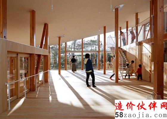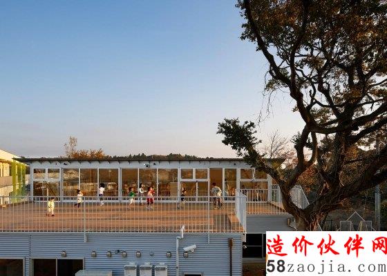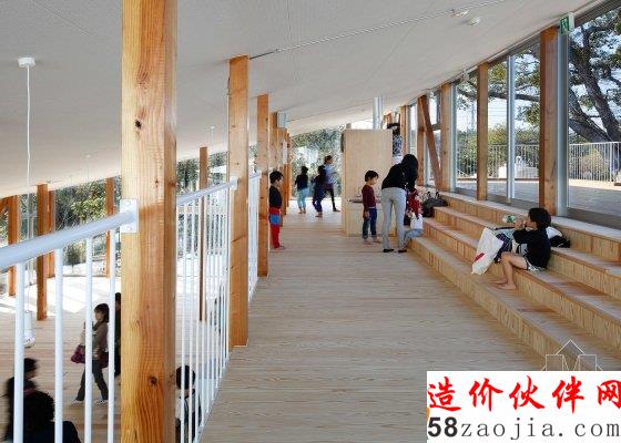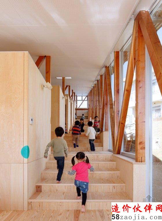 在日本千叶县,东京的山崎健太郎设计工作室(YamazakiKentaroDesignWorkshop)设计了一个内部为阶梯状的幼儿园。