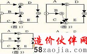 【答案解析】本题考查的是双代号网络图的绘制。选项A,图1中,③④之间没有工作,虚线表示。选项BC,图2和图3中没有表达AB完成后开始D的逻辑关系。参见教材P40。