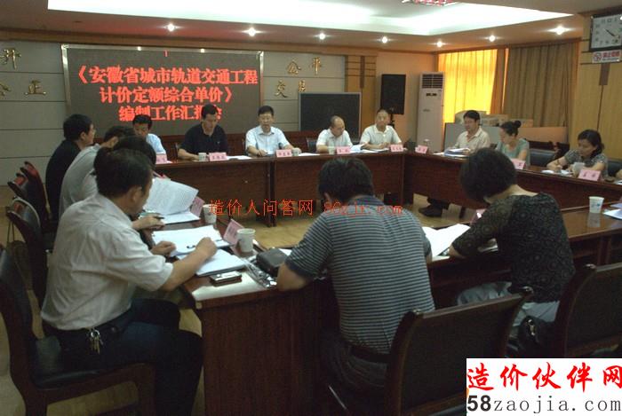 2010年7月15日下午,《安徽省城市轨道交通工程计价定额综合单价》编制审查汇报会议在合肥召开。会议由省住房和城乡建设厅标准定额处王胜波处长主持,省住建厅党组成员、总工程师、建设稽查局局长仲亚平、省建设工程造价管理总站站长王成球、合肥市建委副主任王斌、合肥市建筑事务管理处处长孙业飞参加会议。