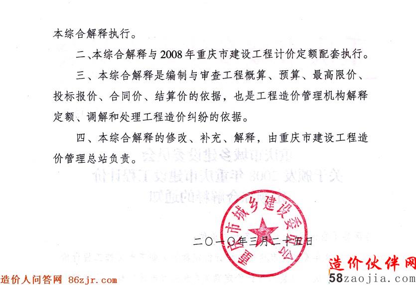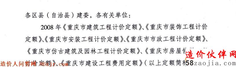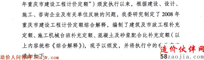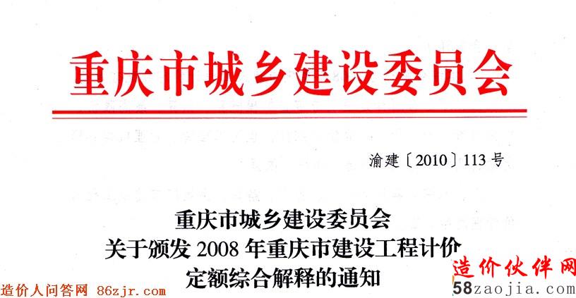 关于颁发2008年重庆市建设工程计价定额综合解释的通知