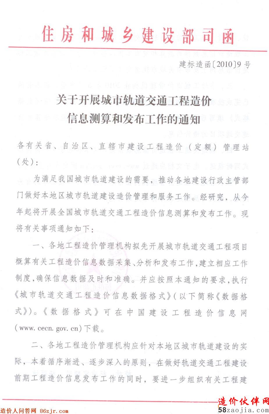 时间:2010-02-01 08:50来源:中华人民共和国住房和城乡建设部 作者:建标造函【2010】9号 点击:次