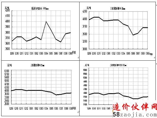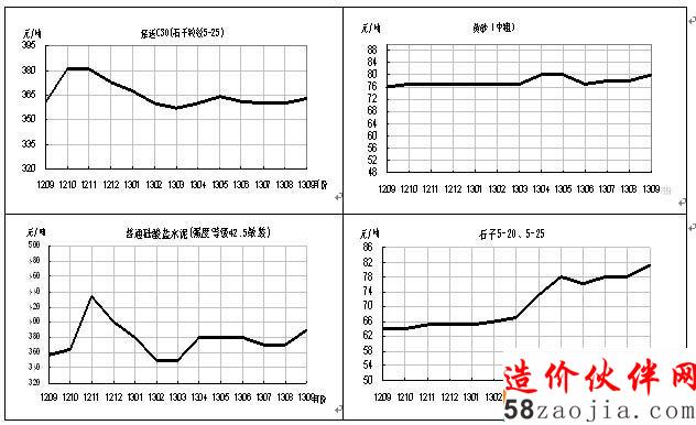 本月普通硅酸盐水泥(散)(42.5级)价格同上月相比下跌2.63%。黄砂(中粗)、石子5-20、5-25同上月相比上涨1.30%和2.63%,而普通硅酸盐水泥(散)(42.5级)、黄砂(中粗)、石子5-20、5-25价格同去年同期相比涨跌幅度为-6.80%、1.09%%和21.88%;商品混凝土价格同上月相比下跌0.28%,同去年同期相比下跌了5.50%。