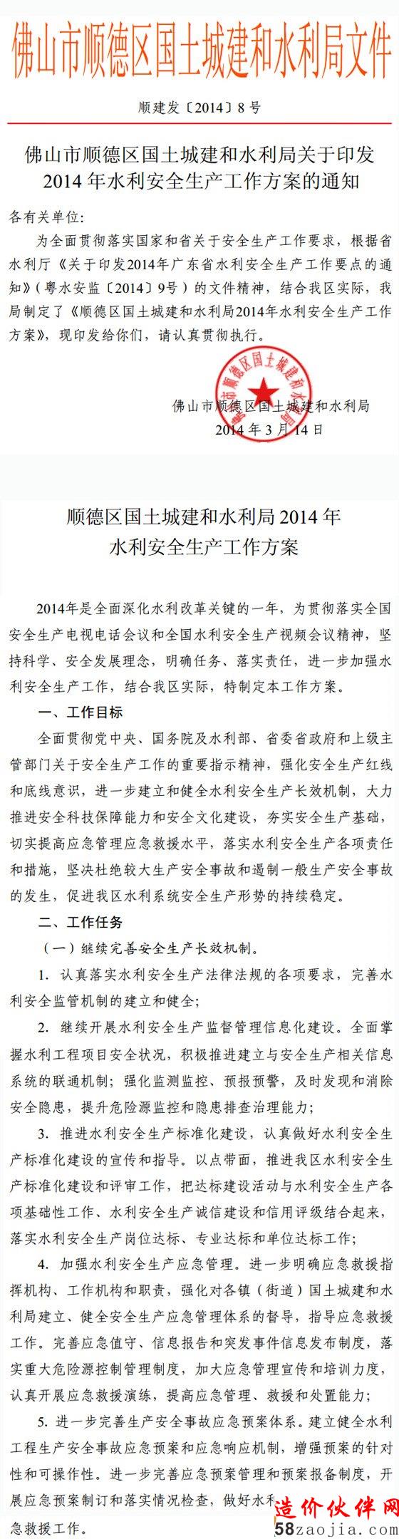 [佛山]关于印发2014年水利安全生产工作方案通知