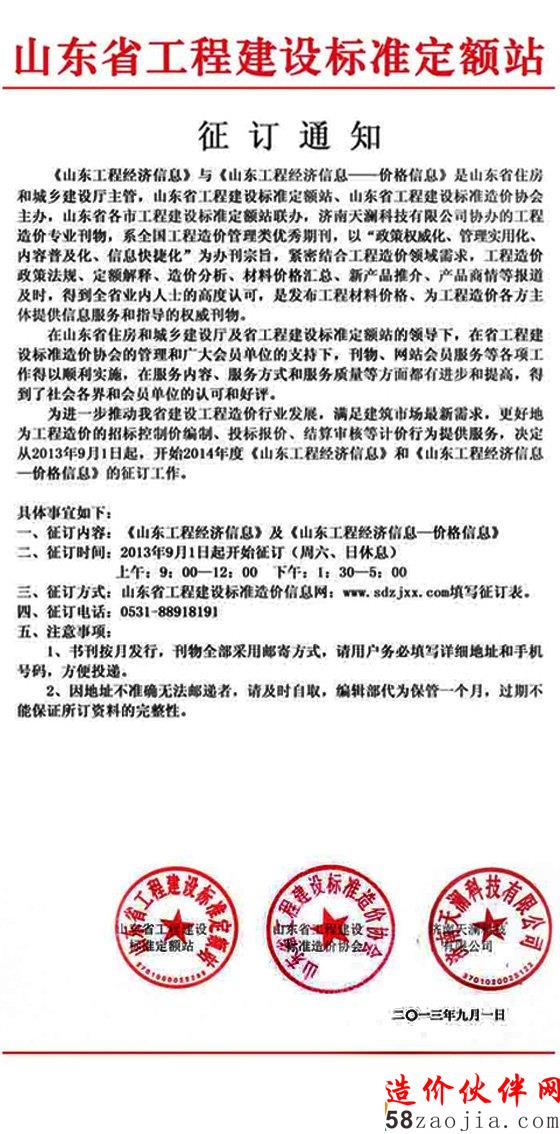 :山东省工程建设标准定额站发布《山东工程经济信息》及《山东工程经济信息——价格信息》征订通知,具体通知内容如下文所示: