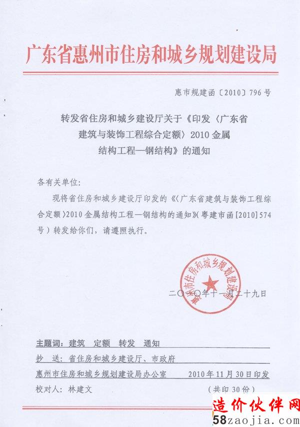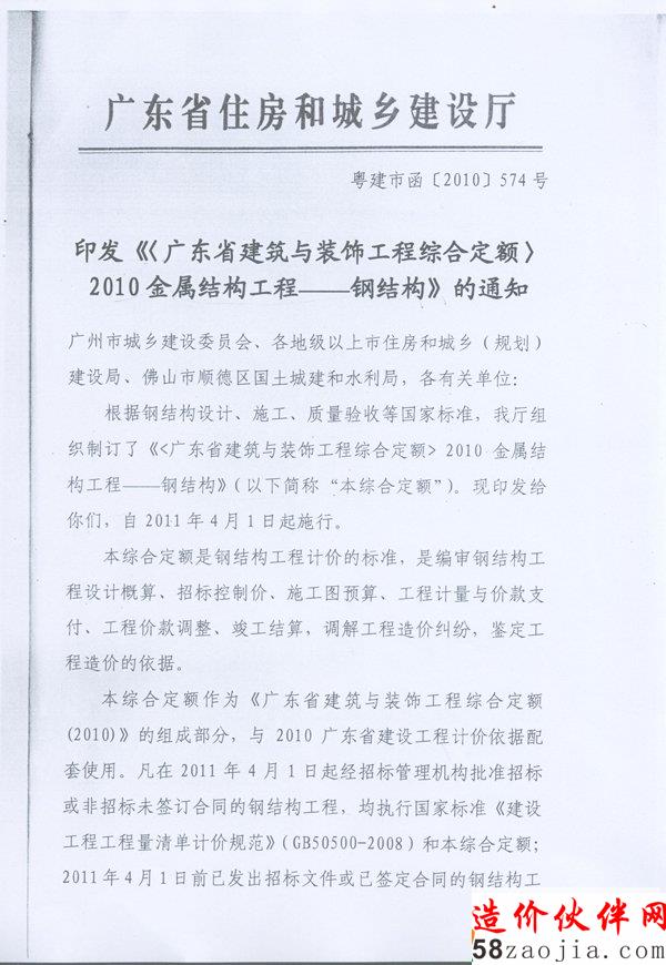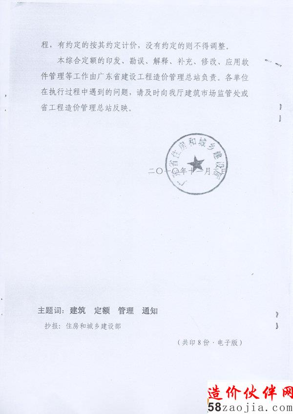 转发省住房和城乡建设厅关于《印发〈广东省建筑与装饰工程综合定