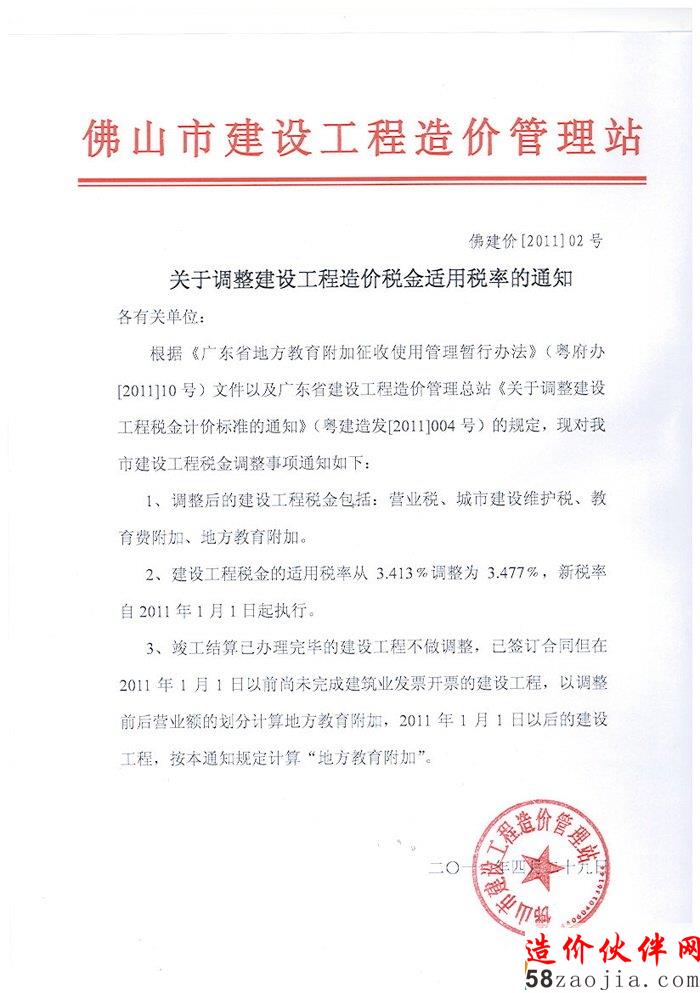 关于调整建设工程造价税金适用税率的通知
