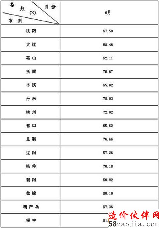 [辽宁]2014年6月市政道路工程材料价格综合指数