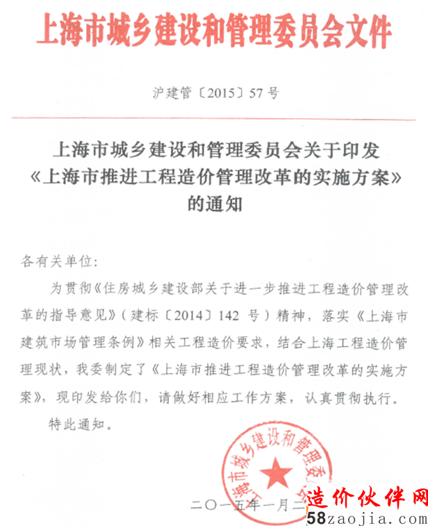 [上海]《上海市推进工程造价管理改革的实施方案》印发通知