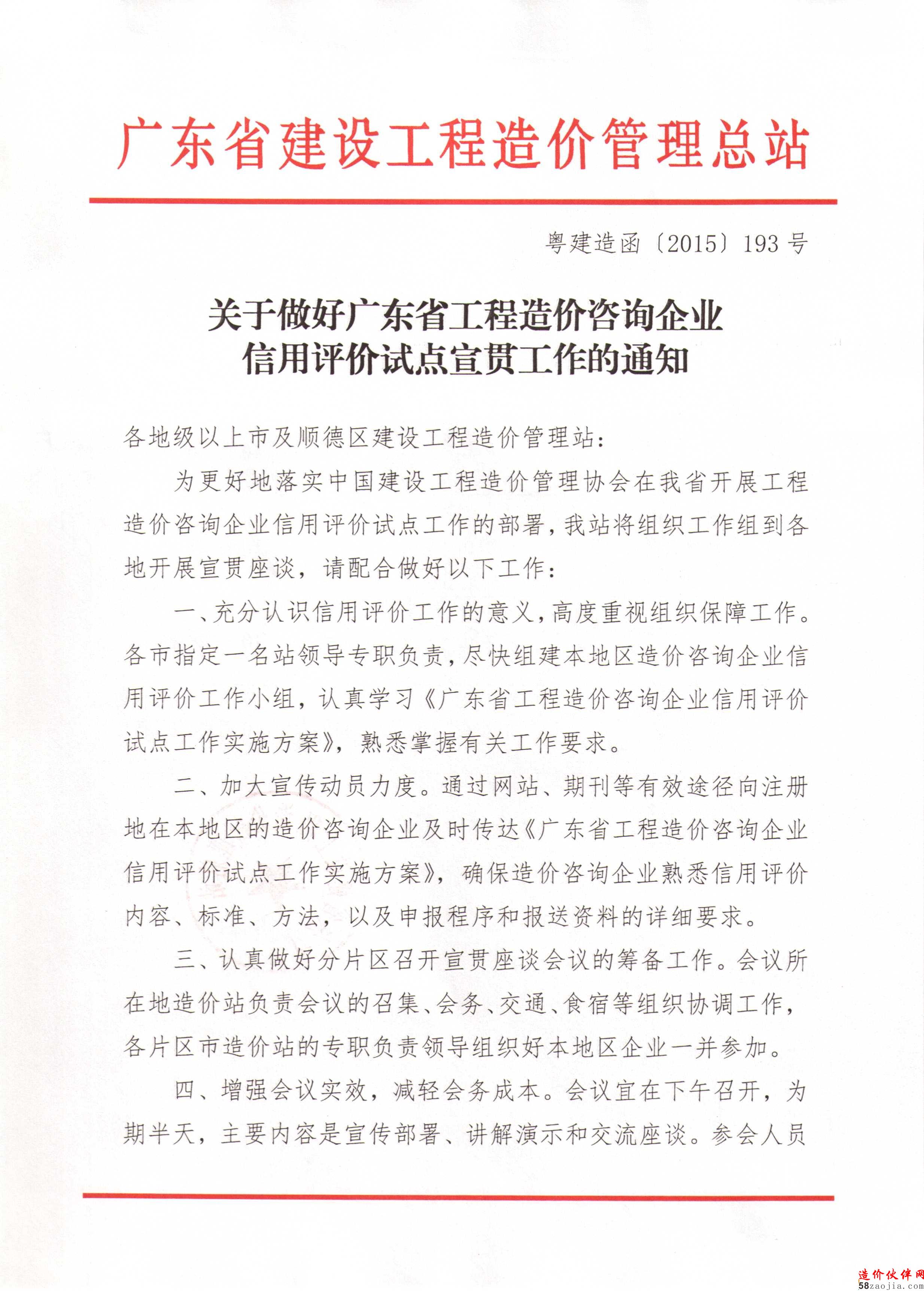 [广东]关于做好工程造价咨询企业信用评价试点宣贯工作的通知