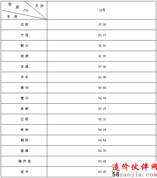 [辽宁]2015年10月份市政道路工程材料价格综合指数