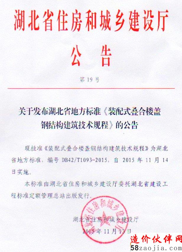 [湖北]关于发布湖北省地方标准《装配式叠合楼盖钢结构建筑技术规