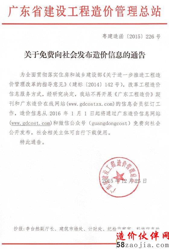 [广东]关于免费向社会发布造价信息的通告