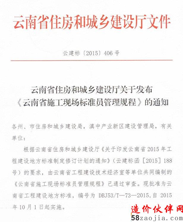 [云南]关于发布《云南省施工现场标准员管理规程》的通知