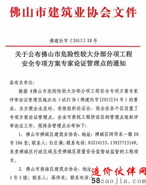 日前,佛山市建筑业协会印发关于公布佛山市危险性较大分部分项工程安全专项方案专家论证管理点的通知,通知具体内容如下图所示: