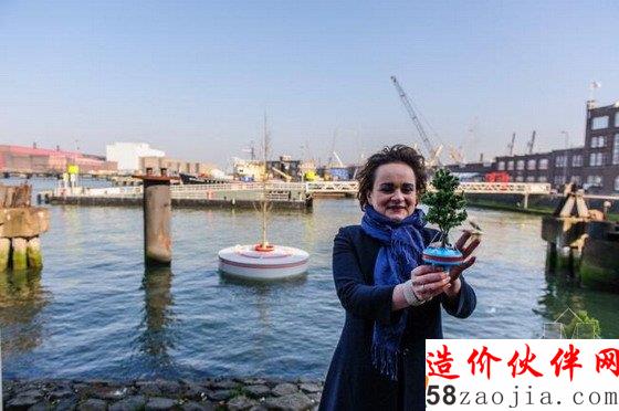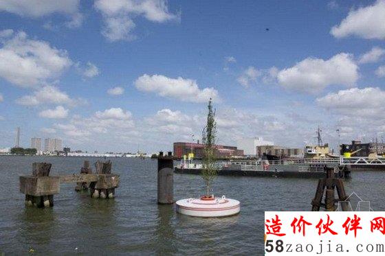 这个漂浮森林将在春天安装在鹿特丹的Rijnhaven海港。