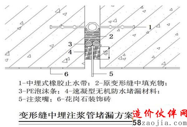 图1-2 伸缩缝(诱导缝、变形缝)渗漏水治理工艺二