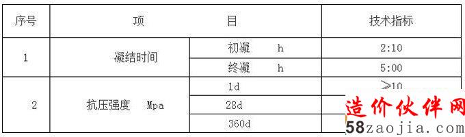 按0.45加水搅拌均匀后技术指标如下表
