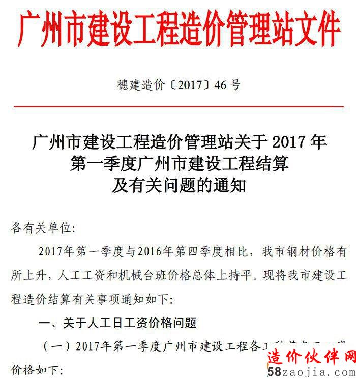 关于2017年第一季度广州市建设工程结算及有关问题的通知