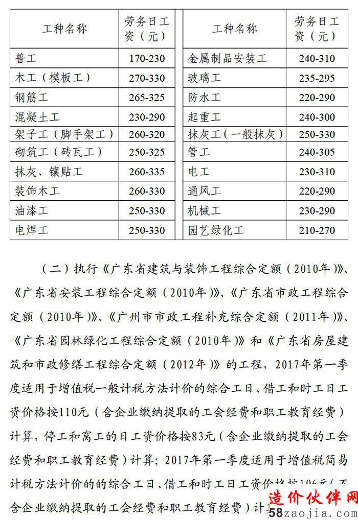 [广东]2014年第二季度定额动态人工单价