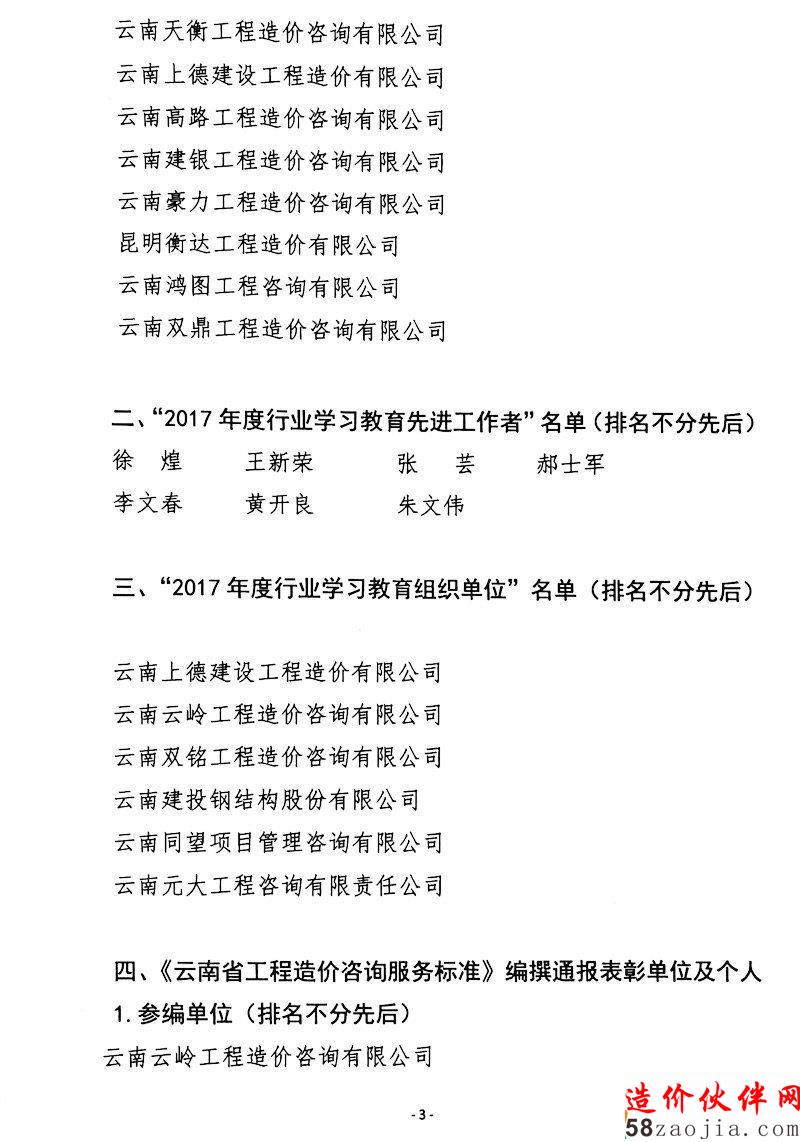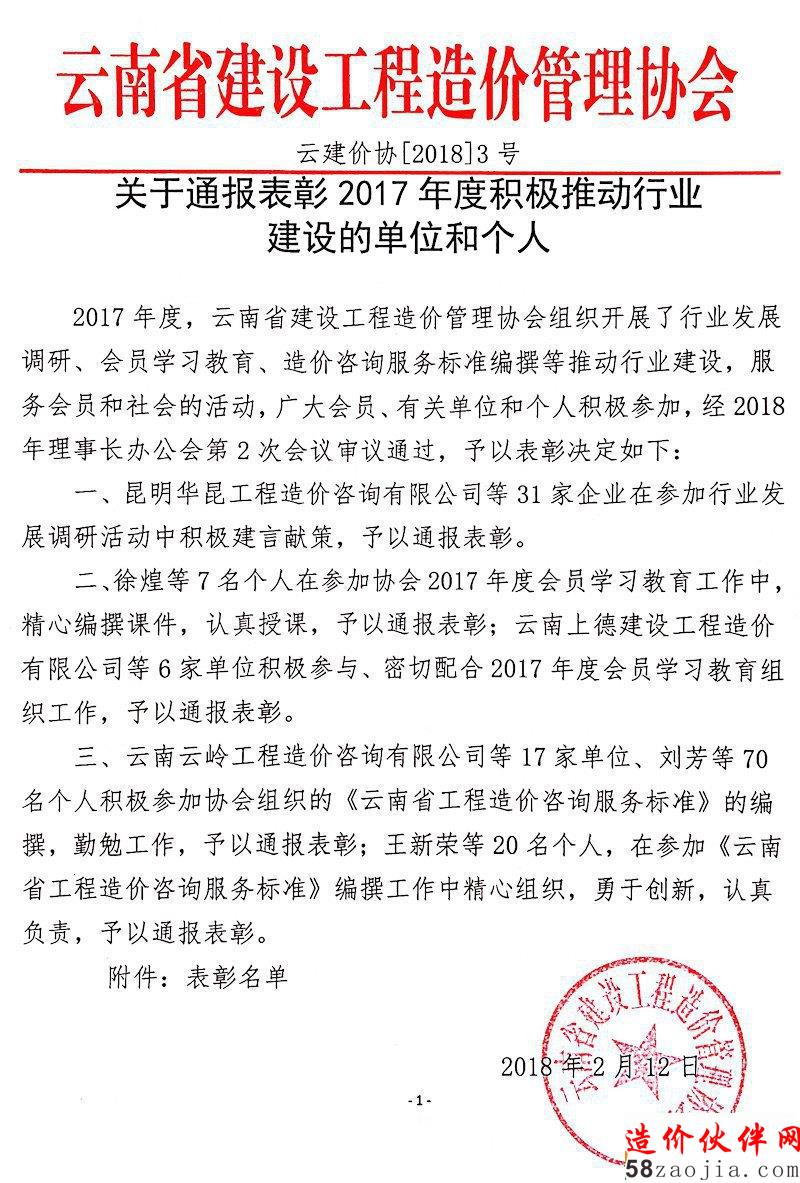 日前,云南省建设工程造价管理协会印发一则关于通报表彰2017年度积极推动行业建设的单位和个人的通知,具体内容如下所示: