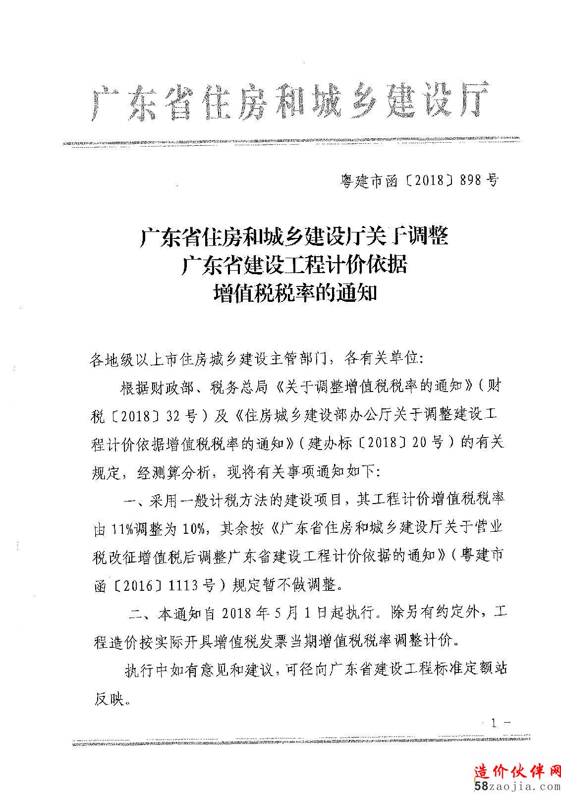 [广州]广东省住房和城乡建设厅关于调整广东省建设工程计价依据增