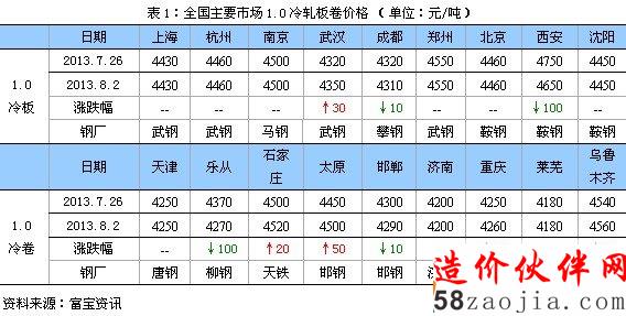 目前在宏观基本面没有明显改善的前提下,上行的动力不足。加之持续高温,工厂开工率受到不同程度的影响,不少商家的信心略有动摇,不过昨日官方发布2013年7月份行业PMI指数为52.5%,比上月回升0.2个百分点,显示下半年开局良好,经济走势稳中趋升,这多少对钢市稍有提振,此外,近期政府将出台更多微调措施,未来经济增长下行风险将减少。综合考虑,现观望心理较浓,操作较谨慎,而月初资金压力减轻,因此富宝冷轧研究小组认为下周价格或将窄幅震荡。
