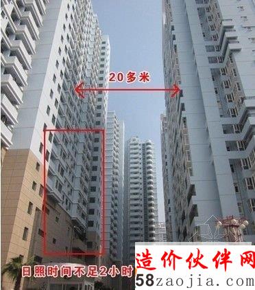 采光,南向的房子采光好,但是如果楼间距过近,即使是南向的房子也可能出现采光不足的现象。住在一层的住户应该都有这样的体会,自己房屋的日照时间大大低于高层的住户。尤其是到了冬天,大白天有时候也要开灯才能工作,这往往就是楼间距过小造成的。