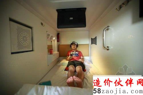 “每个‘太空舱’内长为2米、宽1米,高1.2米,普通身高的人住在里面十分宽松,一个‘太空舱’只能入住一个旅客。”孔先生说,旅客看电视的时候戴上耳机,这样就可以不影响他人休息了。出于对旅客隐私考虑,客房外有个竹帘子,睡觉前可以从里面拉上帘子,这样就有了一个自己的私人空间,较为隐秘。