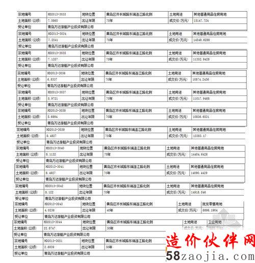 出让的15块地块集中在黄岛区新旧两个区域,其中,柏果树河西2幅商服土地位于原胶南市滨海大道北侧,由青岛万达东方影都投资有限公司以53835.3万元底价竞得;其他13幅土地位于黄岛区前湾港南港区内,距黄岛区中心约10公里的向阳村附近,由青岛万达游艇产业投资有限公司以149946.3万元竞得。