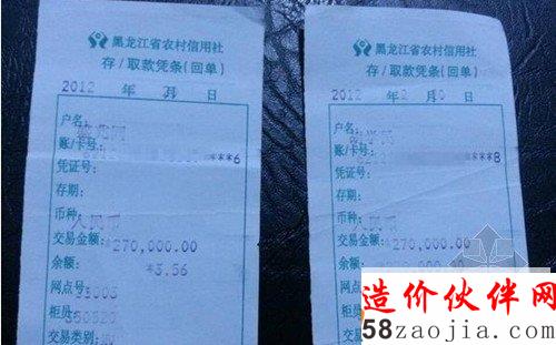 从去年12月开始,盛兆同在开发商的带领下,先后付给拜泉县国土资源局168万元。他提供的银行凭条显示,这些钱通过3家不同的银行转到了一个叫胡学民的人的账户。