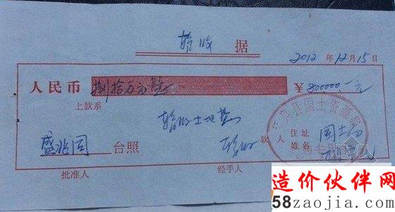 据盛兆同讲,胡学民是拜泉县国土资源局的一名会计。交完钱后,胡学民开了3张收据。记者看到,一张收据名目写着“暂收土地费”,第二张上写着“暂收出让金”,第三张上则只写着“以后换据”;三张收据金额分别为80万、60万和28万元;收款人落款是“国土局胡学民”并盖有“拜泉县国土资源局收费专用章”的红章。