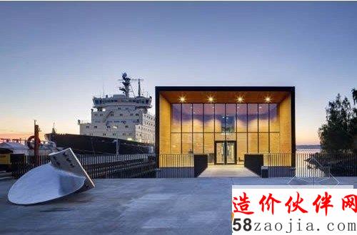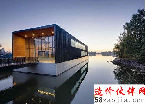 该建筑在芬兰西部一家造船厂建造完成,然后拖至建筑基地。建筑采用了压载水系统,可使办公建筑的地面与码头保持在同一水平上。