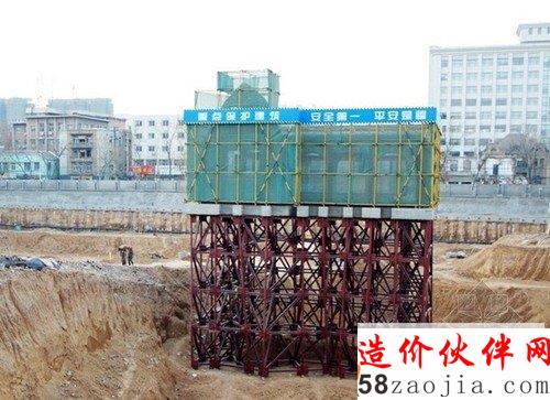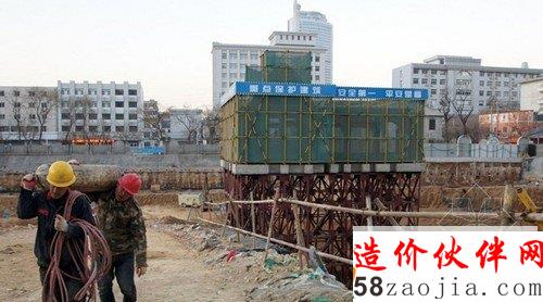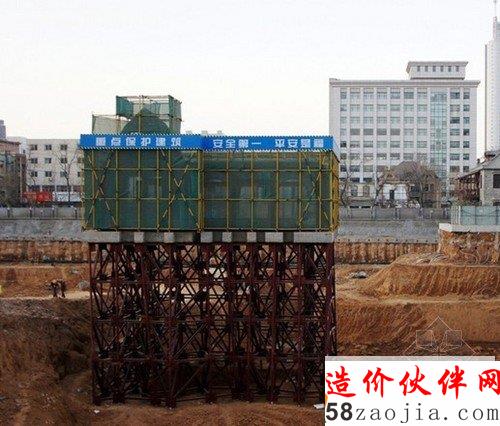 2014年1月21日,济南市中山公园附近一建筑工地现一脚手架架起来的老式建筑,似是“空中楼阁”。原來是济南市百年商埠风貌区建筑工地,有两座老建筑。据悉,这两座老宅都是20世纪初期济南民族资本家张采丞的故居,均具有百年历史。工程初期将更换老宅内部木梁,随后用更加稳固的钢结构取代,内外墙皮也会进行翻新处理,让老宅焕发出新的光彩。而把其中一座处于建筑基础之内的老房子用铁管脚手架支撑起来加以保护,从远处看上去犹如悬空楼。