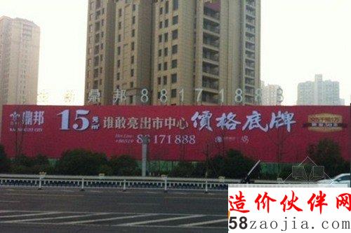 摘要:近段时间,楼市降价成为人们热议的话题,开发商降价促销手段也是花样百出,江苏常州通江路一名为金新鼎邦的楼盘近日打出15元/平米的巨幅广告。17日,记者来到金新鼎邦售楼处案场,首先看到的就是售楼处门外左侧墙面的巨幅广告,赫然写着“15元/平米”的字样。楼价低到如此地步,虽然足够诱人,但却令人怀疑价格的真实性。