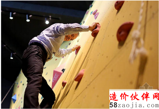 王石参观北京四中房山校区时即兴体验学校的攀岩设施