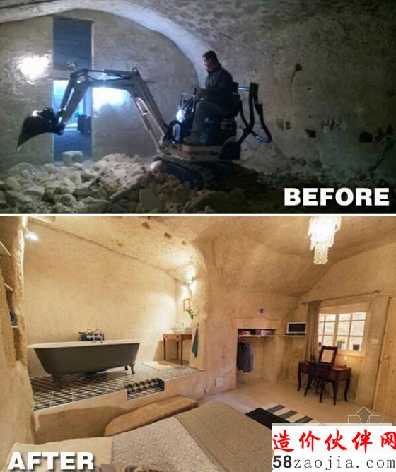 虽然洞穴已经是自己的囊中物,但立刻入住明显是不可能,于是这对情侣花了3年时间在Alexis父亲经营的餐厅打工,赚够了翻新费用之后再动工。加固、清理垃圾、重新铺设管道电线,一年多后,当初大家嫌弃的垃圾洞穴已经成功转型,变成设备齐全的现代居所,两个睡房两个卫浴,但却保留了粗犷的洞穴构造,成果非常惊人。