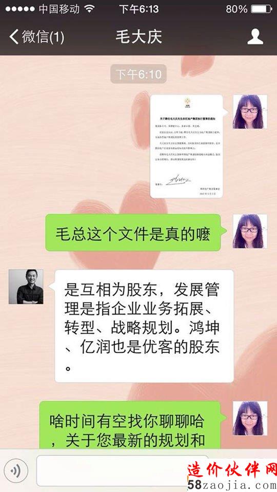 “是互相为股东,发展管理是指企业业务拓展、转型、战略规划。鸿坤、亿润也是优客的股东。”5月5日下午,一则毛大庆被聘担任鸿坤地产集团任执行董事的通知流出。就此记者联络毛大庆本人,得到了上述回复。