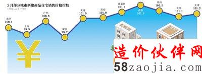 从四个一线城市看,据初步测算,4个一线城市新建商品住宅销售价格环比上涨0.2%,涨幅比2月回落0.1个百分点。其中:北京和广州分别上涨0.4%和0.8%,上海和深圳分别下降0.1%和0.3%。