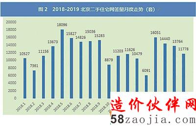 2018-2019北京二手住宅网签量月度走势 数据来源:我爱我家研究院