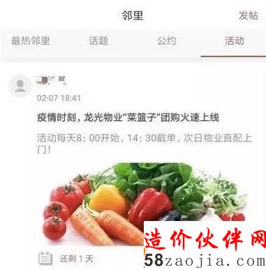 2月8日,龙光物业在其龙光汇app上线了一项“菜篮子”团购功能,并首先在广州、佛山两城的龙光在管小区试点运营。业主只需在龙光汇app首页点击“菜篮子”活动报名信息便可参与。