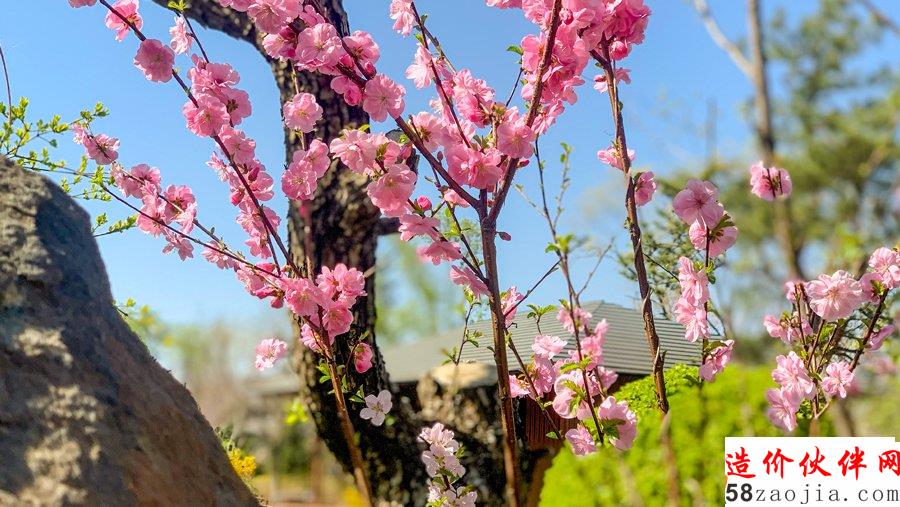 春日,黑松、黄金槐、西府海棠、蒙古栎迎风而立,樱花、玉兰、杏花接连盛开,满园春色动人间。
