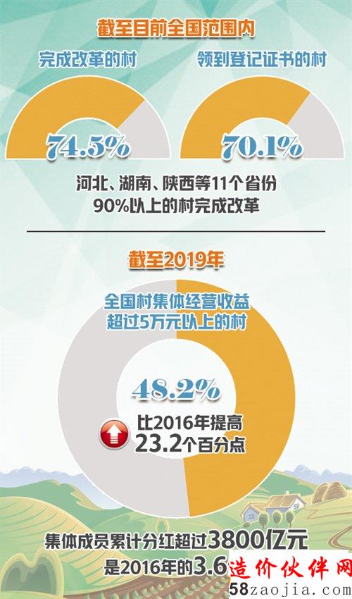 数据显示,2019年,全国村集体经营收益超过5万元以上的村占到48.2%,比2016年提高23.2个百分点;集体成员累计分红超过3800亿元,是2016年的3.6倍,农民群众的获得感、幸福感明显增强。