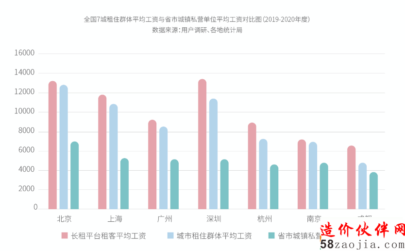 高学历及相对较高的收入,使得租住群体成为了城市居民中消费能力较高的群体之一。数据显示,全国主要的一线及新一线城市的租住群体,平均薪资均远超城市均值,尤其是北京、上海、深圳的租住群体,平均薪资均达到了城镇私营单位平均工资的2倍以上。