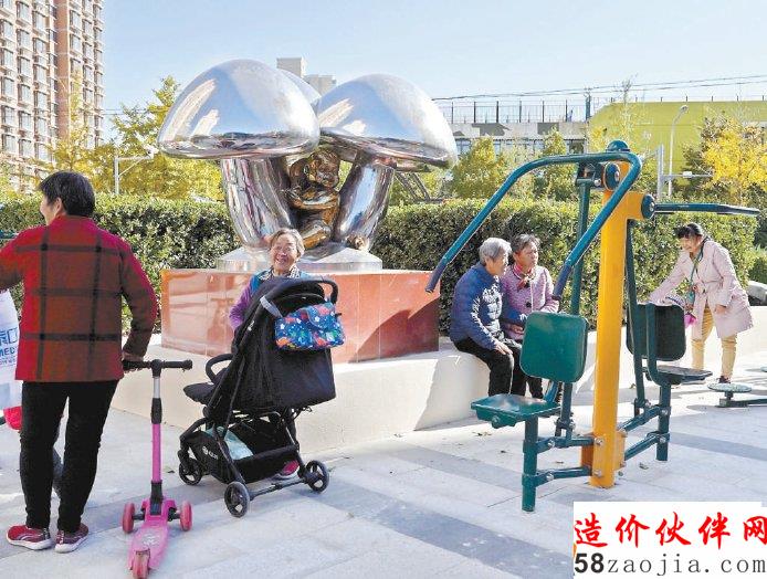 科学园南里六区适老化改造后的小花园功能齐全,老人们有了休闲锻炼的好去处。(程功/摄)