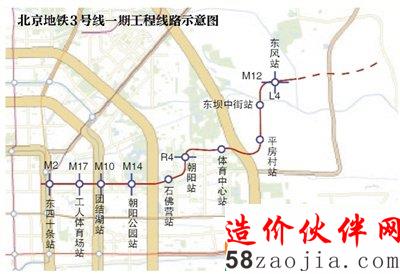 记者从北京市轨道公司获悉,北京地铁3号线一期工程西起东四十条,沿工体北路、朝阳公园南路向东,至姚家园路向北转至京沈客专朝阳站,之后沿姚家园北一路向东进入东坝地区,至规划东坝大街到达终点,线路全部为地下线。线路起点站为东四十条站,终点站为东风站,共设车站10座,其中换乘车站6座,线路全长15.6km,平均站间距1.6km,车辆采用标准A型车。