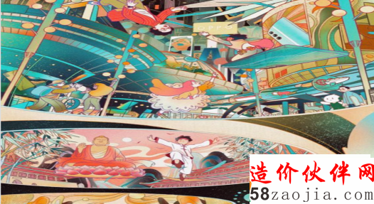 同样在视觉上相当复杂的还有《光辉城市》。通过像素图形这一数字时代下特有的视觉语言,构成整个城市发展的表达逻辑,即运用像素从点、线、面、体到多维的造型语言,描绘一个不断发展、周而复始的城市景观。