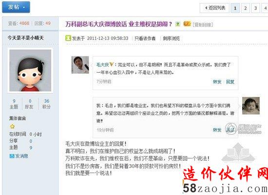 业主致万科毛大庆文章