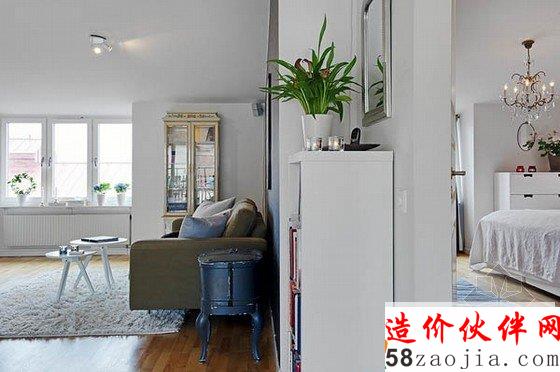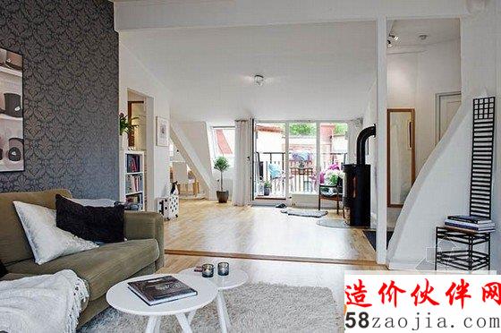 这座Scandinavian 公寓阳光充足,温馨典雅阳光公寓装修精心打造了一个梦幻般的场景,一个充实的生活方式。温馨典雅阳光公寓装修现代化的家具,温馨典雅的客厅。