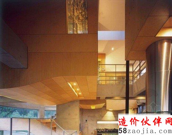 这个位于韩国的现代别墅装饰设计项目是由 IROJE KHM Architects负责的。韩国现代别墅室内装饰这是一个巧妙独特的设计,为了提高土地的利用效率,现代别墅室内装饰打造了一个倾斜的不规则的建筑形状。设计师戏剧性地将外部环境空间和室内空间相结合,达到了与周围环境的灵活统一。